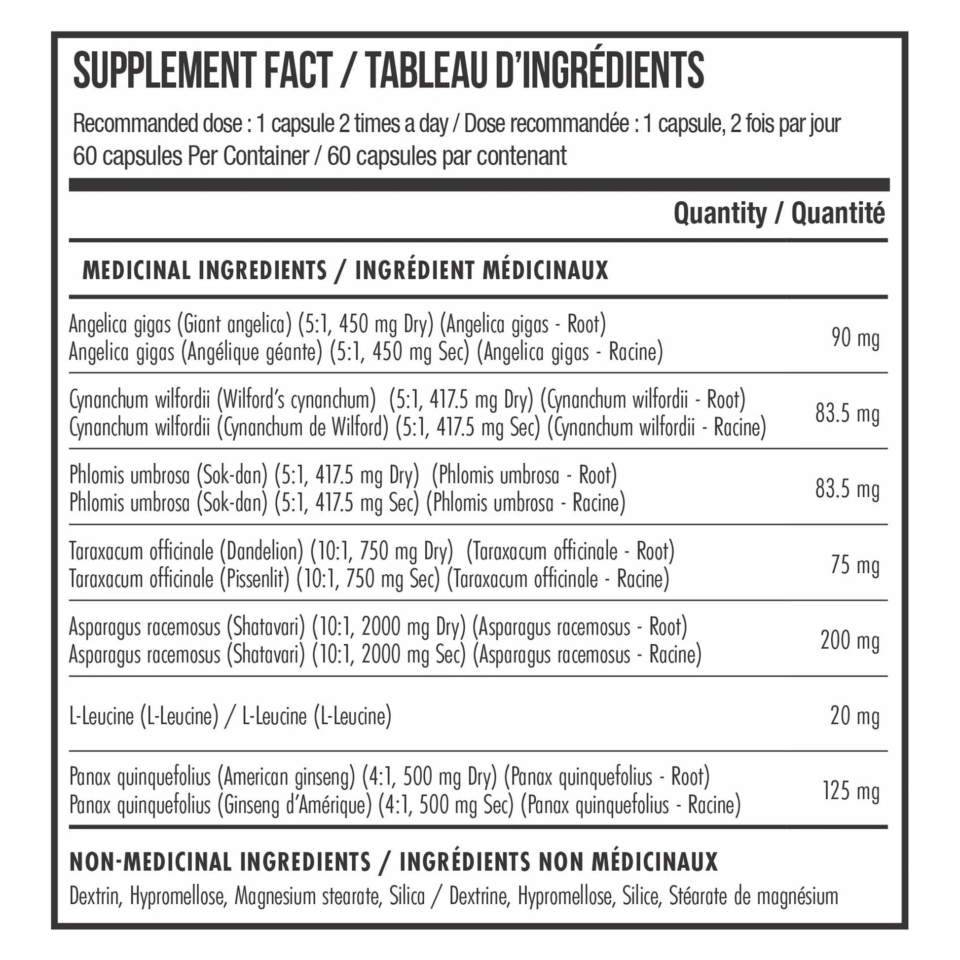 Nova Pharma Meno Pause combines multiple natural actives used in herbal medicine to support the body’s natural hormonal balance and help reduce common discomforts experienced during menopause. EstroG-100™ (standardized extract of Angelica gigas, Cynanchum wilfordii, and Phlomis umbrosa) has been studied for its ability to help ease hot flashes, night sweats, and fatigue. Additional ingredients such as Asparagus racemosus (Shatavari) and Panax quinquefolius (American Ginseng) contribute to maintaining overall energy and vitality, while Taraxacum officinale(Dandelion) supports detoxification and fluid balance.