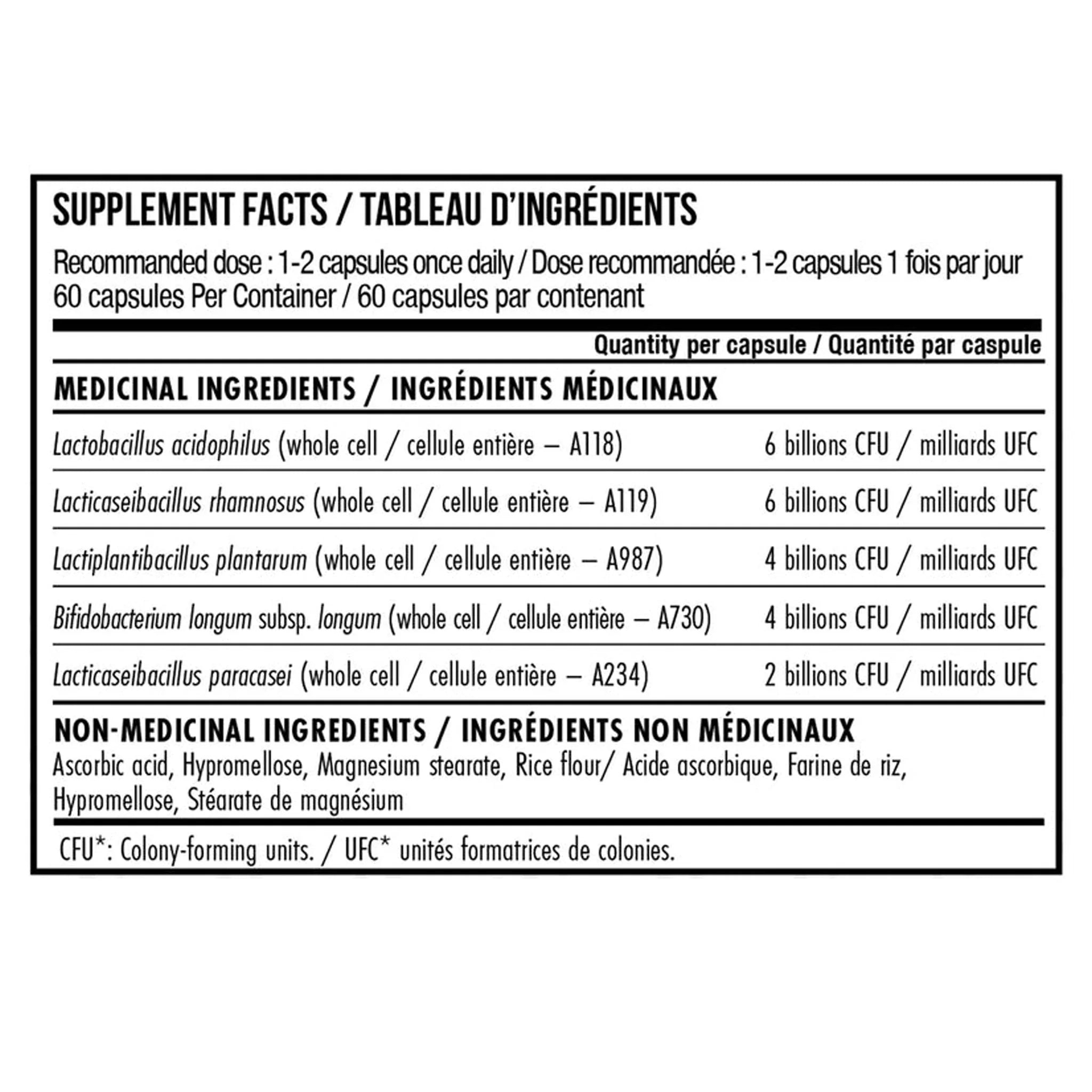This broad-spectrum formula features a synergistic blend of Lactobacillus acidophilus, Lactobacillus rhamnosus, Lactiplantibacillus plantarum, Bifidobacterium longum, and Lactobacillus paracasei. Together, these beneficial bacteria populate both the small and large intestines, supporting the natural balance of gut flora that can be disrupted by stress, diet, or antibiotic use.
