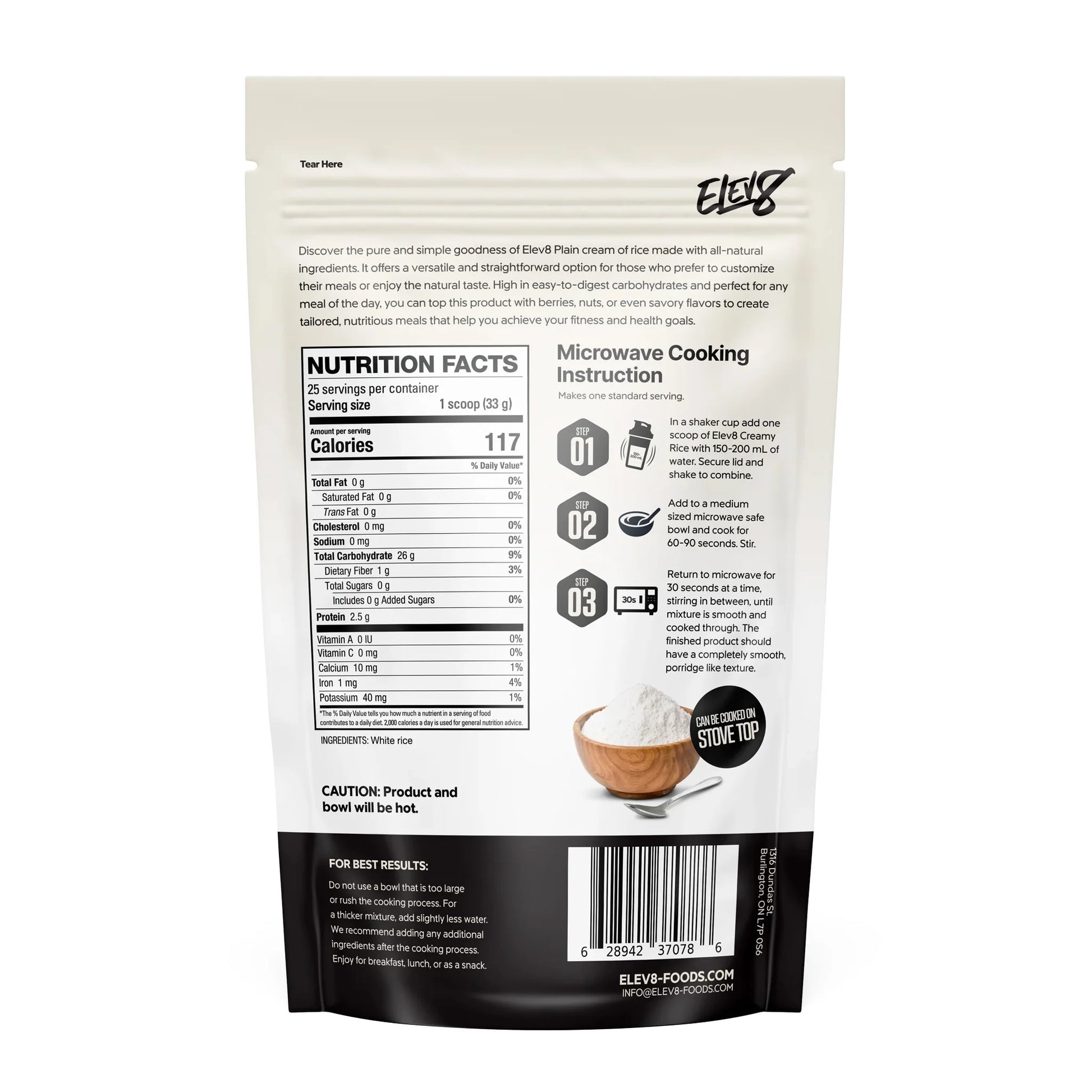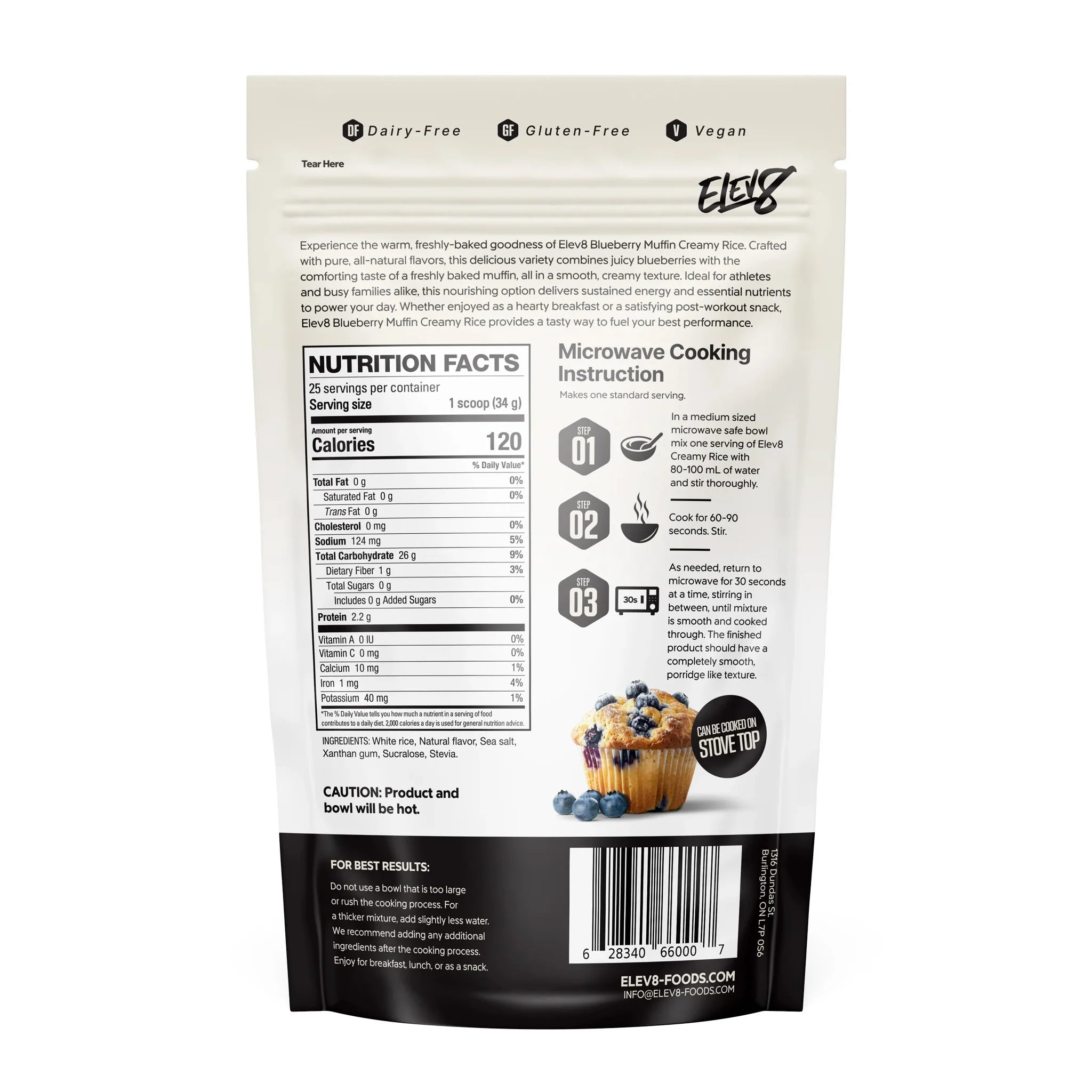 Free from common allergens like dairy, soy, and gluten, and made without artificial colors or preservatives, Elev8 Creamy Rice is as clean as it is convenient. The addition of sea salt and stevia provides balance in taste while keeping the formula naturally sweet and satisfying.