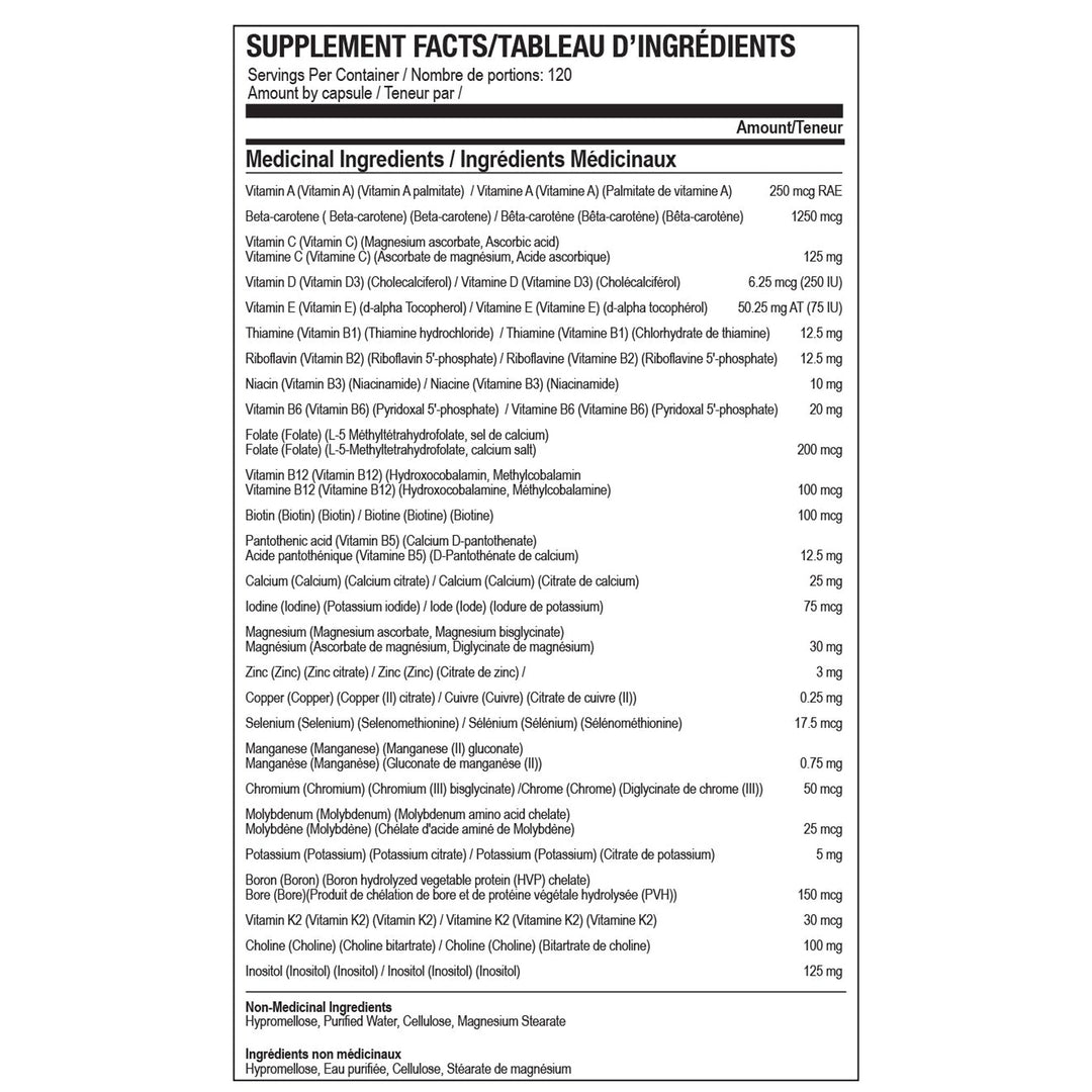De plus, si vous envisagez une grossesse, notre multivitamine est particulièrement bénéfique. Elle peut contribuer à réduire le risque d'anomalies du tube neural si elle est prise quotidiennement pendant au moins trois mois avant et pendant la grossesse.
